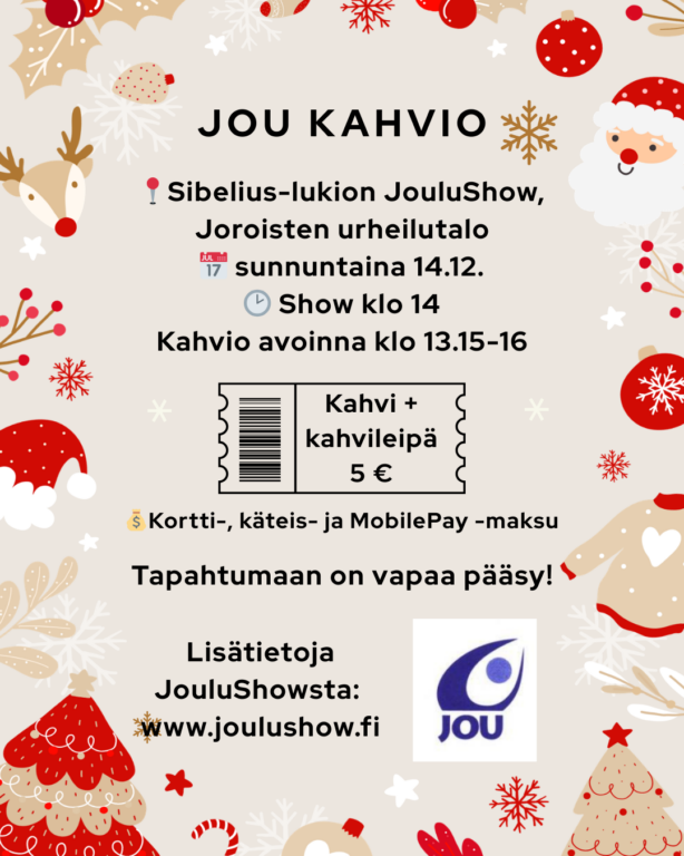 Joroisten urheilijat pitävät kahviota urheilutalolla Sibelius-lukion Joulushown aikana sunnuntaina 14.12.2025 klo 13.15 – 16.00.