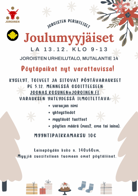 Joroisten perinteiset joulumyyjäiset järjestetään lauantaina 13.12.2025 klo 9-13.