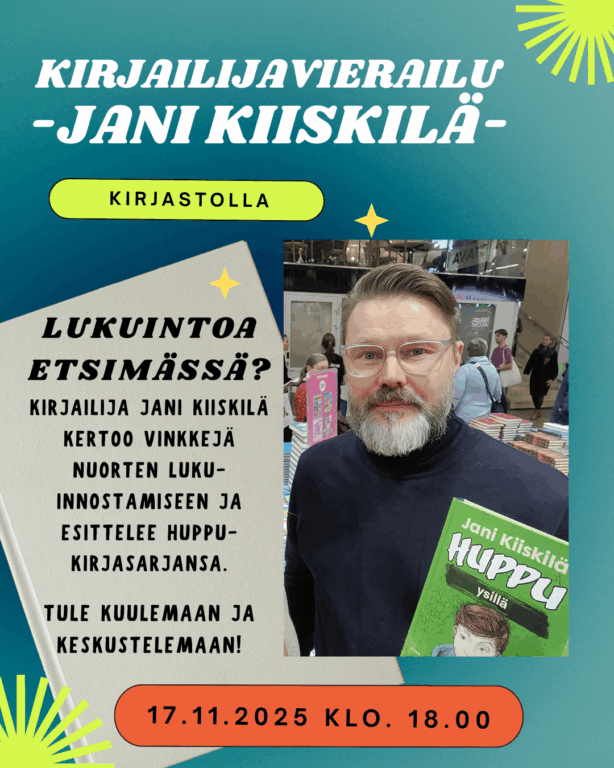 Kirjailijavierailu Jani Kiiskilä maanantaina 17.11. klo 18.00.