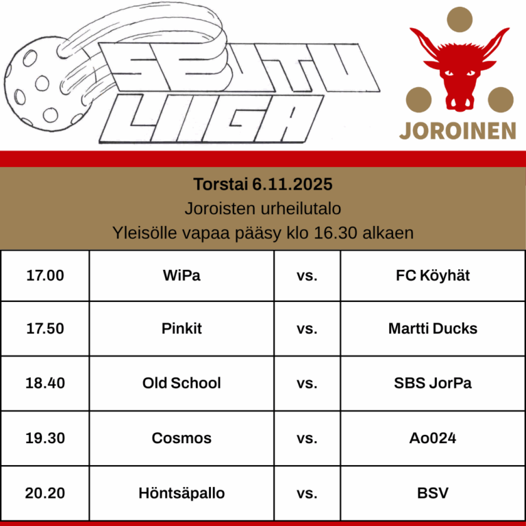 Salibandyn seutuliigaa Joroisissa 6.11.2025 klo 17.00